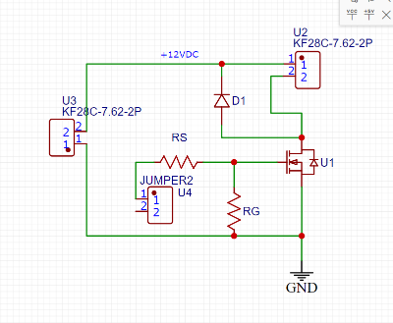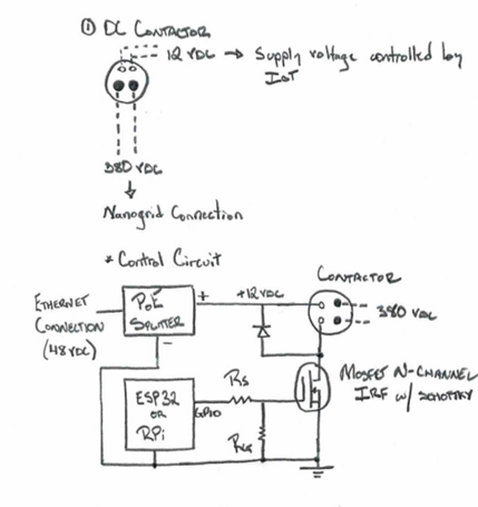 Left displays the sketch/concept for the PCB. Right displays the switch that needs to be turned on or off based on control logic (red box - power input, green box - switch control)