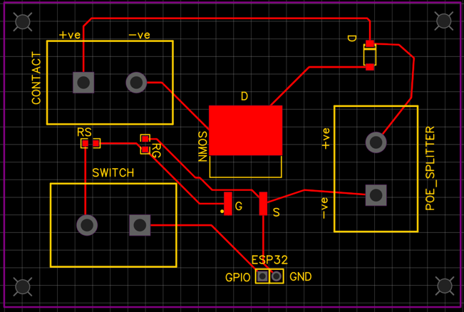 First, the circuit was tested on a bread board with a LED light prior to installation. Once verified, a circuit schematic was drawn into EasyEDA and KiCAD