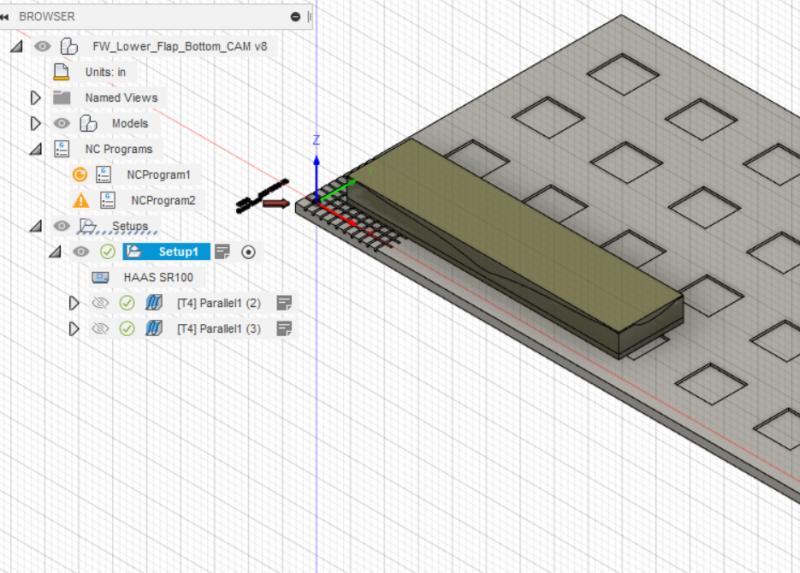 Prior to manufacturing the part, Computer Aided Manufacturing (CAM) was done on each part in Fusion 360.